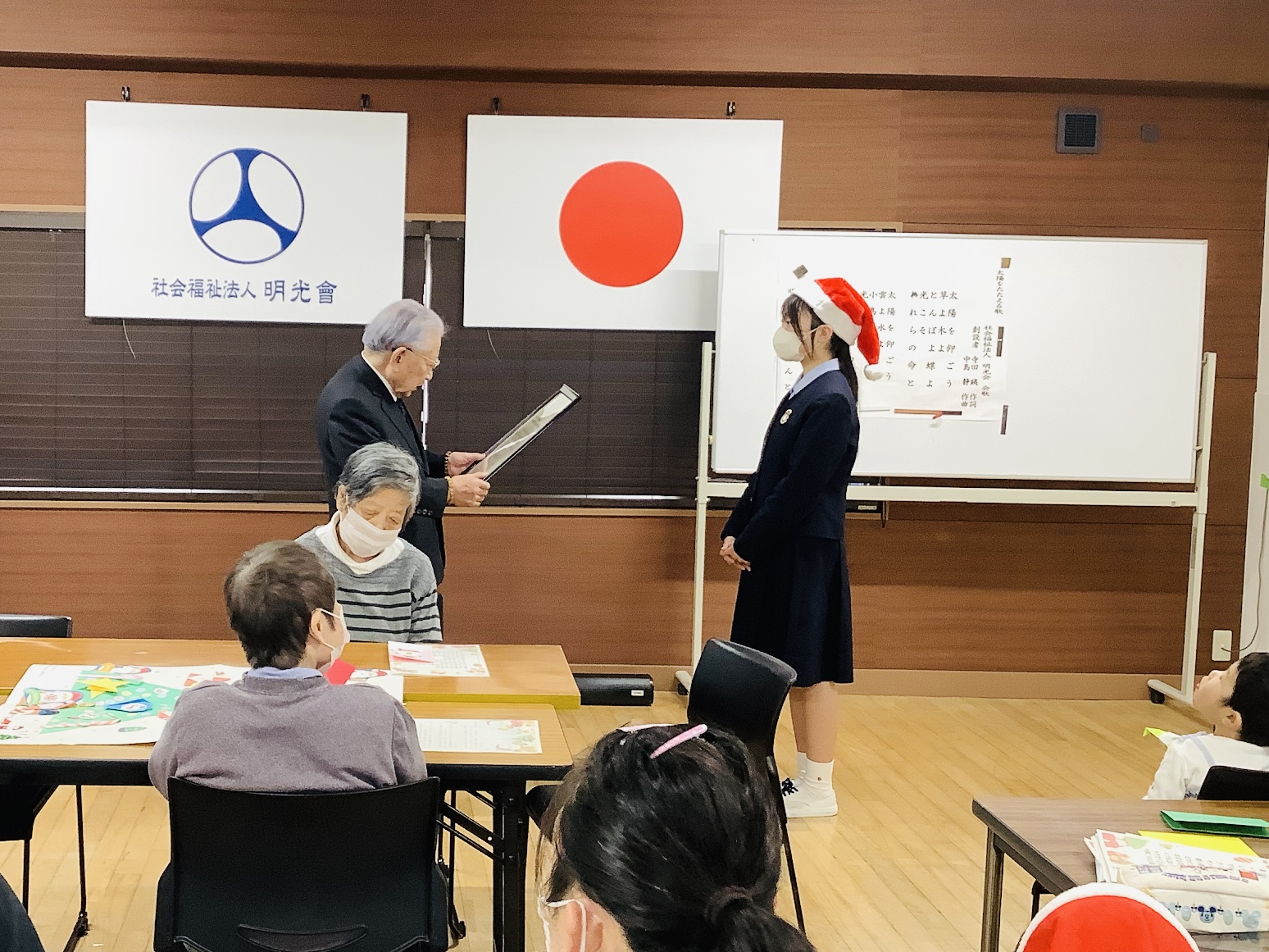 新聞部は「ルーチェ仰陽」を訪問しました。私たちのクリスマス訪問が「小さな親切」運動の実行章をいただくことになり、本校を推薦くださったこちらの施設で、実行章の授与が行われました。