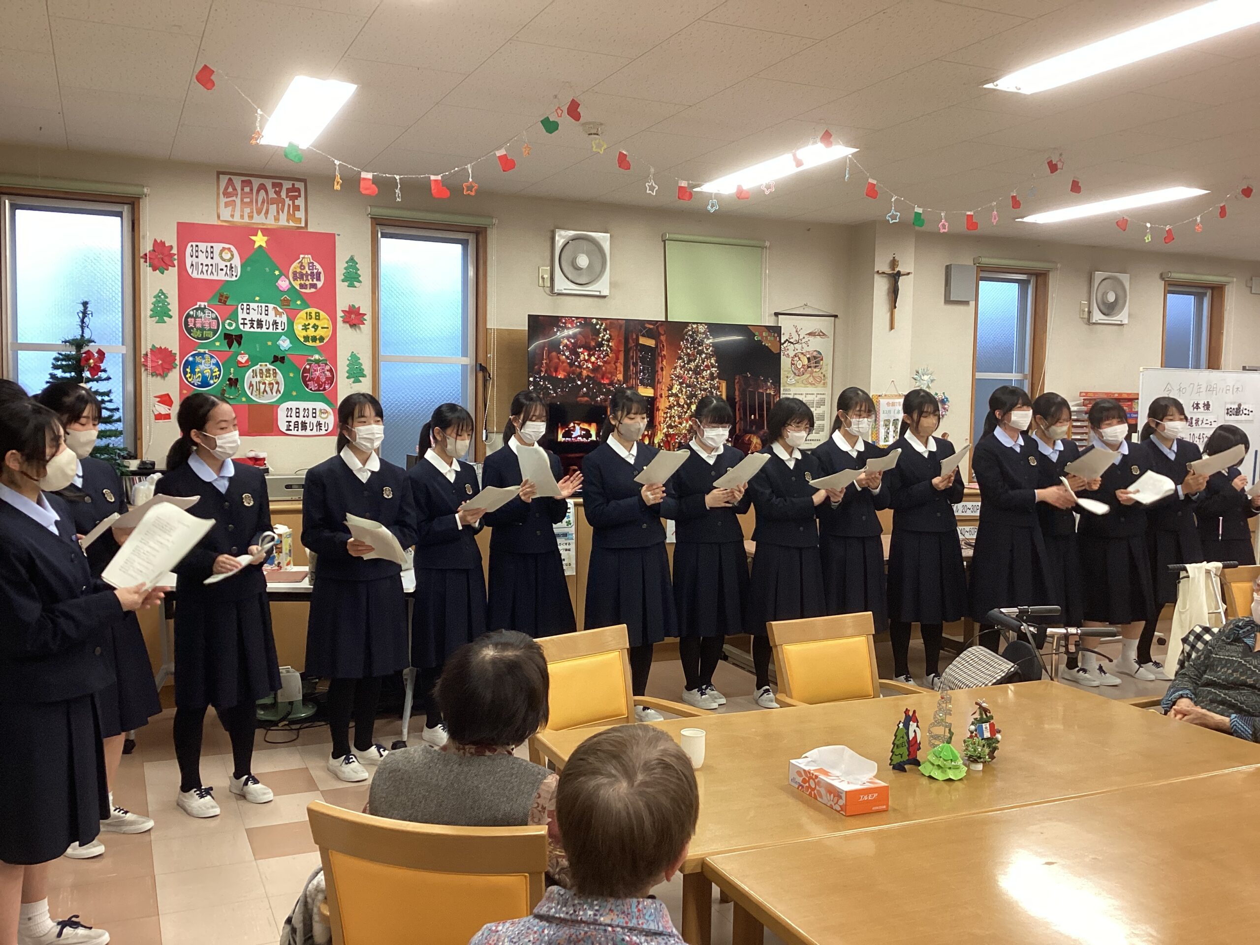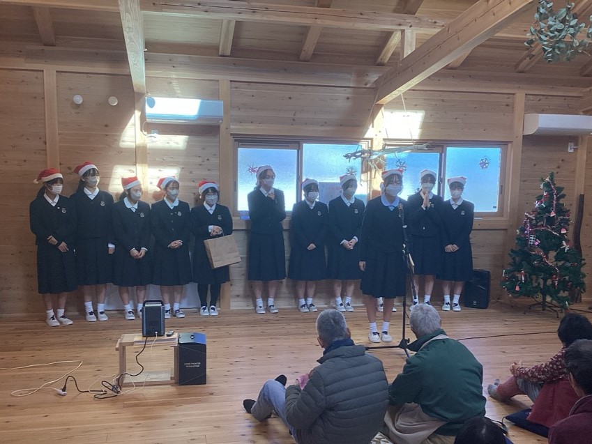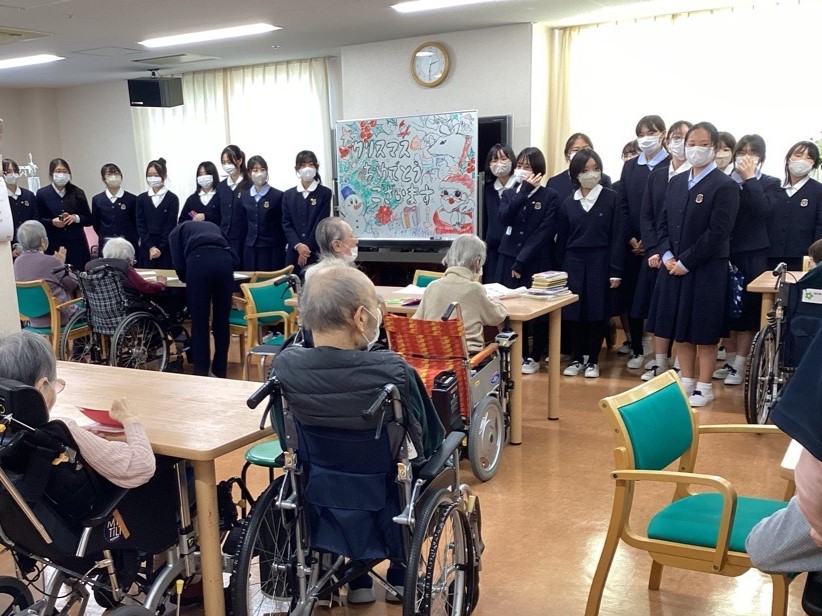 当日は、施設の皆様からたくさんの笑顔や拍手をいただき、あたたかい雰囲気の中でクリスマスの喜びを分かち合うことができました。生徒たちも嬉しそうな表情で施設を後にし、帰校しました。