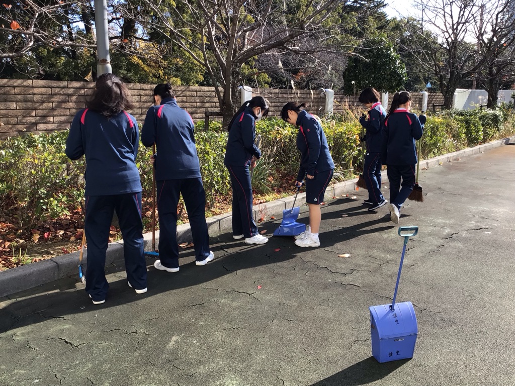 訪問に参加しない生徒たちは、校庭や学校周辺のエリアを掃除しました。約10人で、大きなゴミ袋3袋分ものゴミや落ち葉を集めました。
