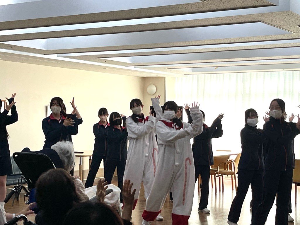 ダンス部も、2つのグループに分かれて訪問しました。こちらのグループは「わらしな学園」を訪問し、ダンスを披露しました。