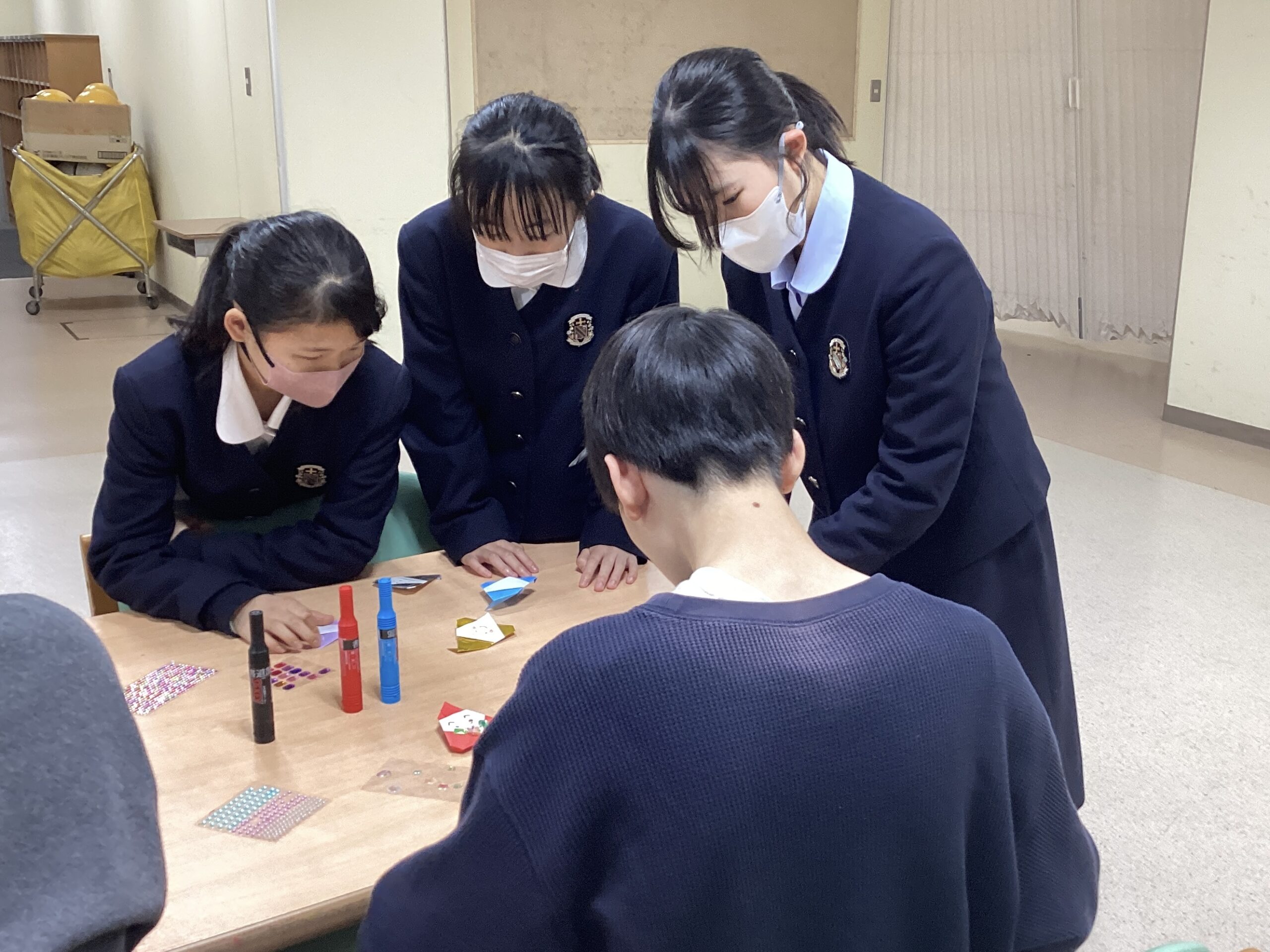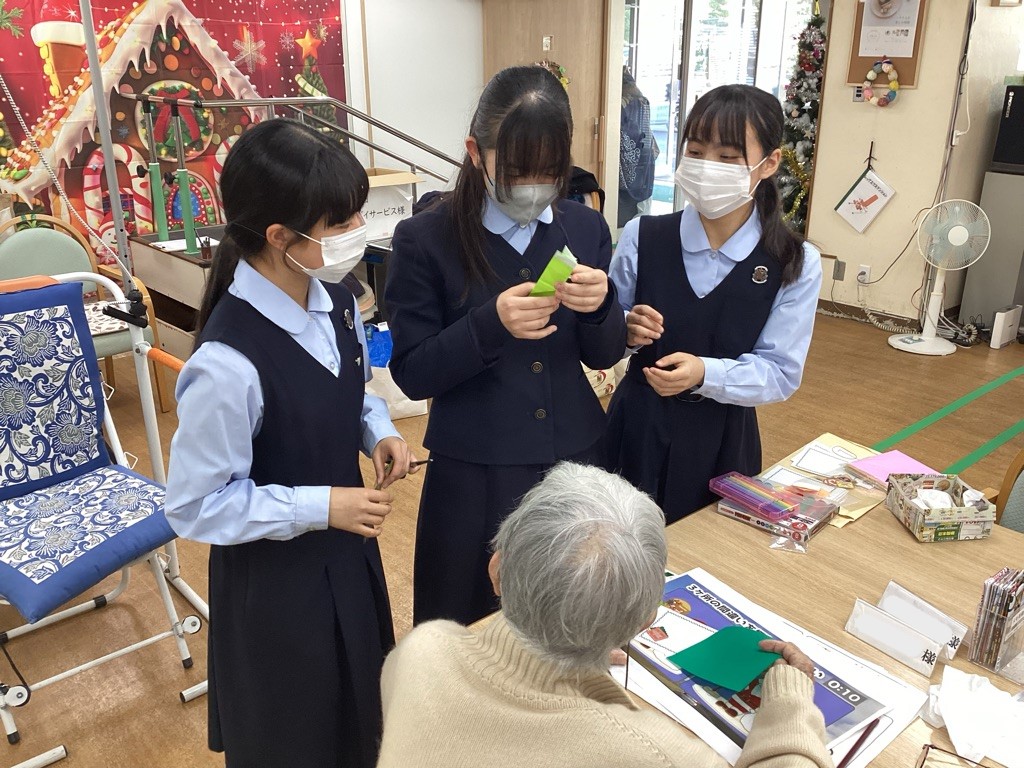 書道部は「望未(のぞみ)園」を訪問しました。ゴルフやストラックアウトなどの室内ゲームと、サンタクロースの折り紙製作を楽しく行いました。