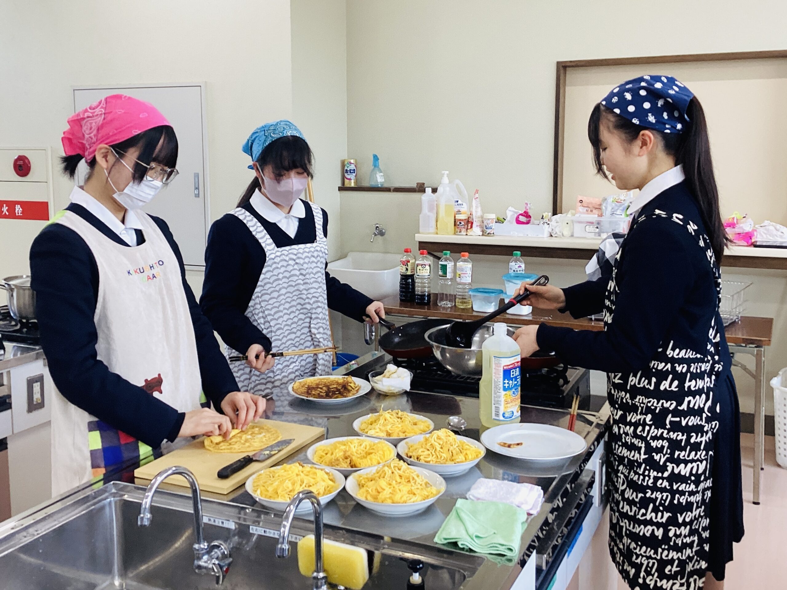 3月上旬から中旬にかけて、中3の各クラスで「伝統食の献立」というテーマのもと、「ちらし寿司のお弁当」の調理実習を行いました。ちらし寿司は昔から、3月3日のひな祭りの行事食として親しまれてきました。由来は諸説ありますが、「寿(ことぶき)を司(つかさど)る」という意味や、具沢山で見た目が華やかなことから、縁起物として扱われてきたのだそうです。