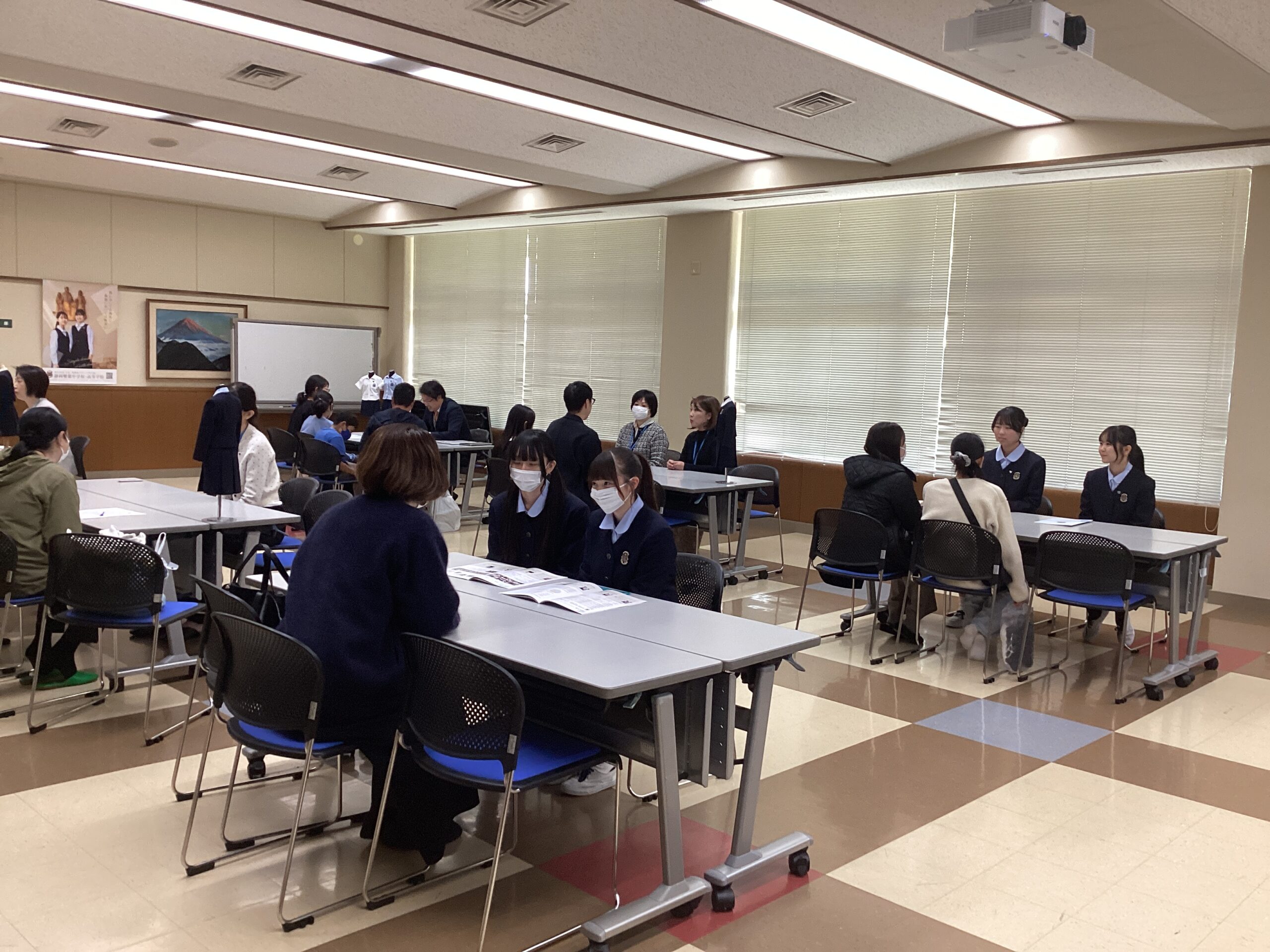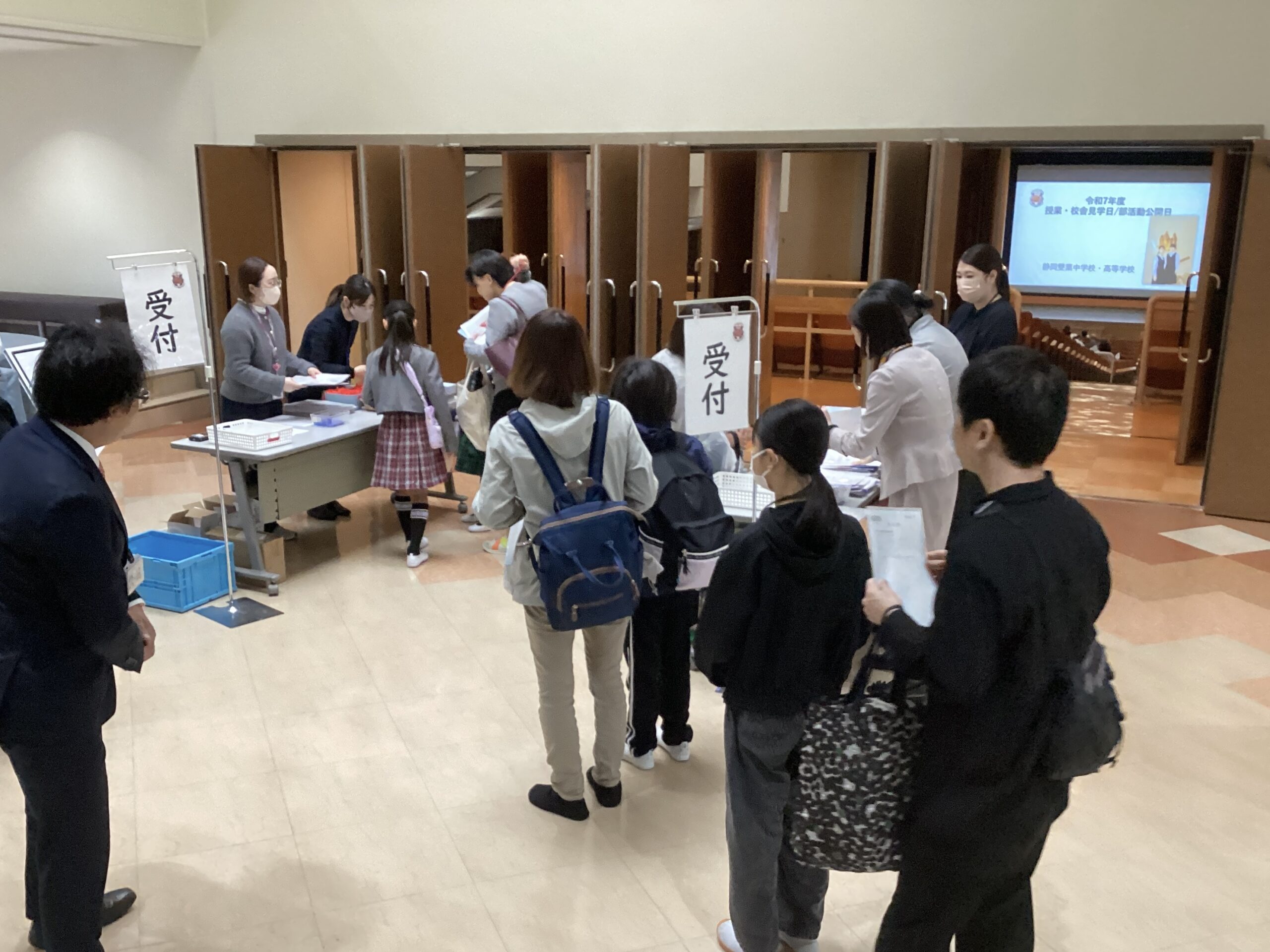 授業・部活動公開後は大会議室にて「質問コーナー」も設けられ、雙葉の学校生活について、教員・在校生・在校生の保護者に気軽に質問いただきました。こちらも列ができるほどの盛況ぶりでした。