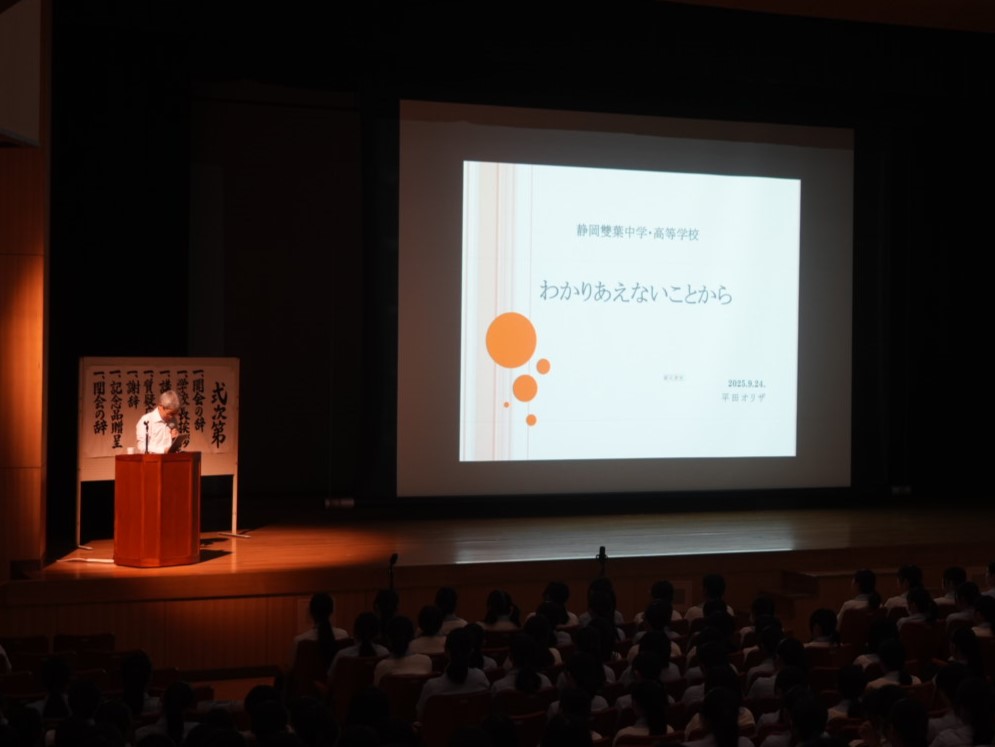 9月24日(水)6~7時間目に、講堂にて「未来への志を育む講演会」を行いました。講師として劇作家・演出家の平田オリザ氏をお迎えし、「わかりあえないことから」を演題にお話をいただきました。
