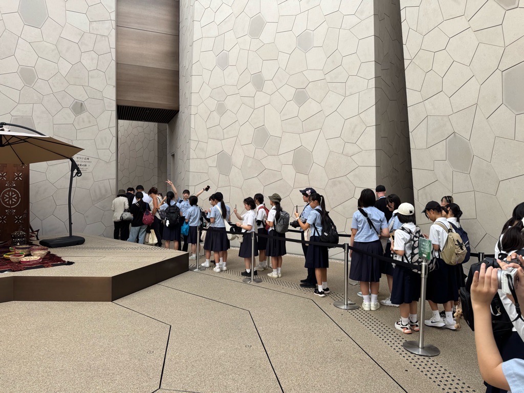 「三菱未来館」では生命のこれまでとこれからを、大使と本校との繋がりから特別招待をいただいた「サウジアラビア館」では、トーブを着た皆さんからの歓待を受け、中東地域独自の文化や産業発展の様子を学ぶことができました。