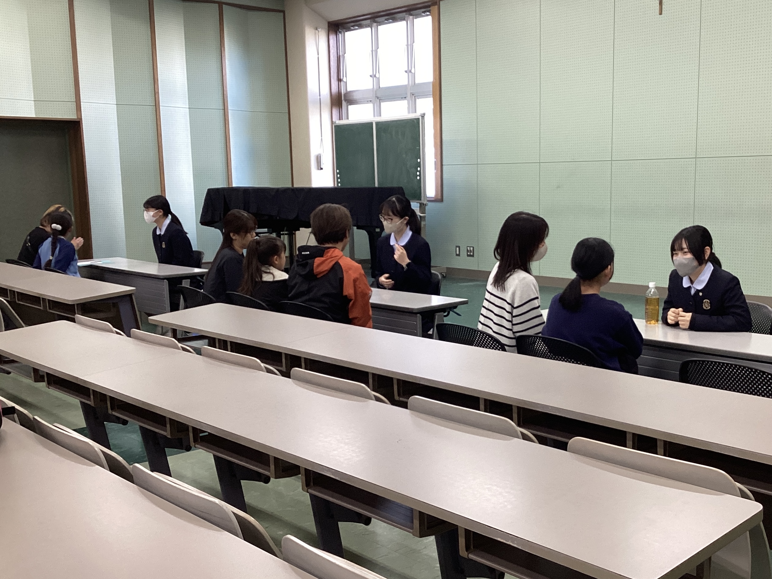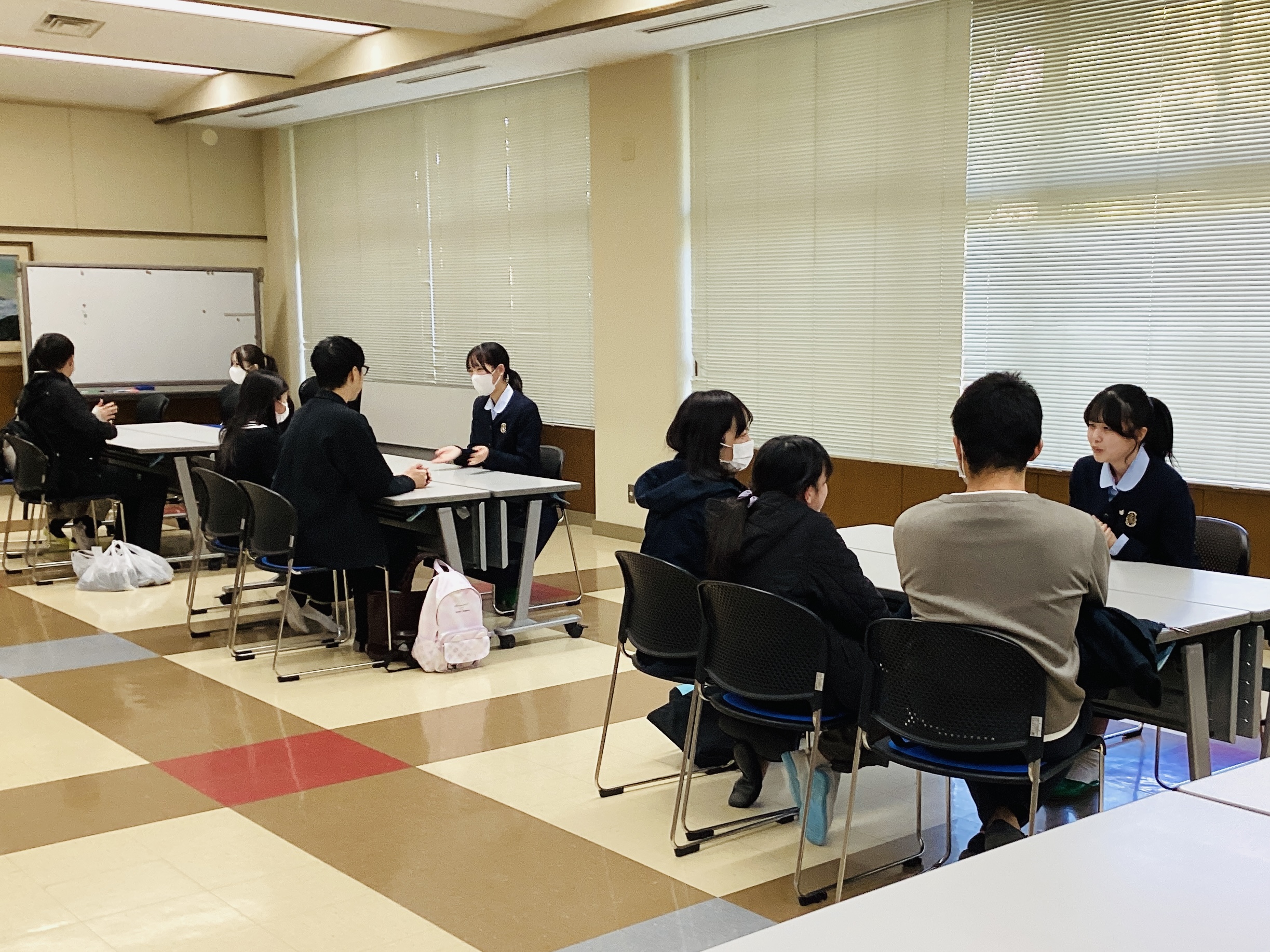 3月14日(土)午後、視聴覚室にて「第5回 FBJCの集い」を行いました。今年度最後のFBJCの集いであり、卒業したばかりの高校3年生8名が登壇し、座談会を行いました。卒業生たちには、6年間の学校生活で得られたことや、今後の進路について語ってもらいました。