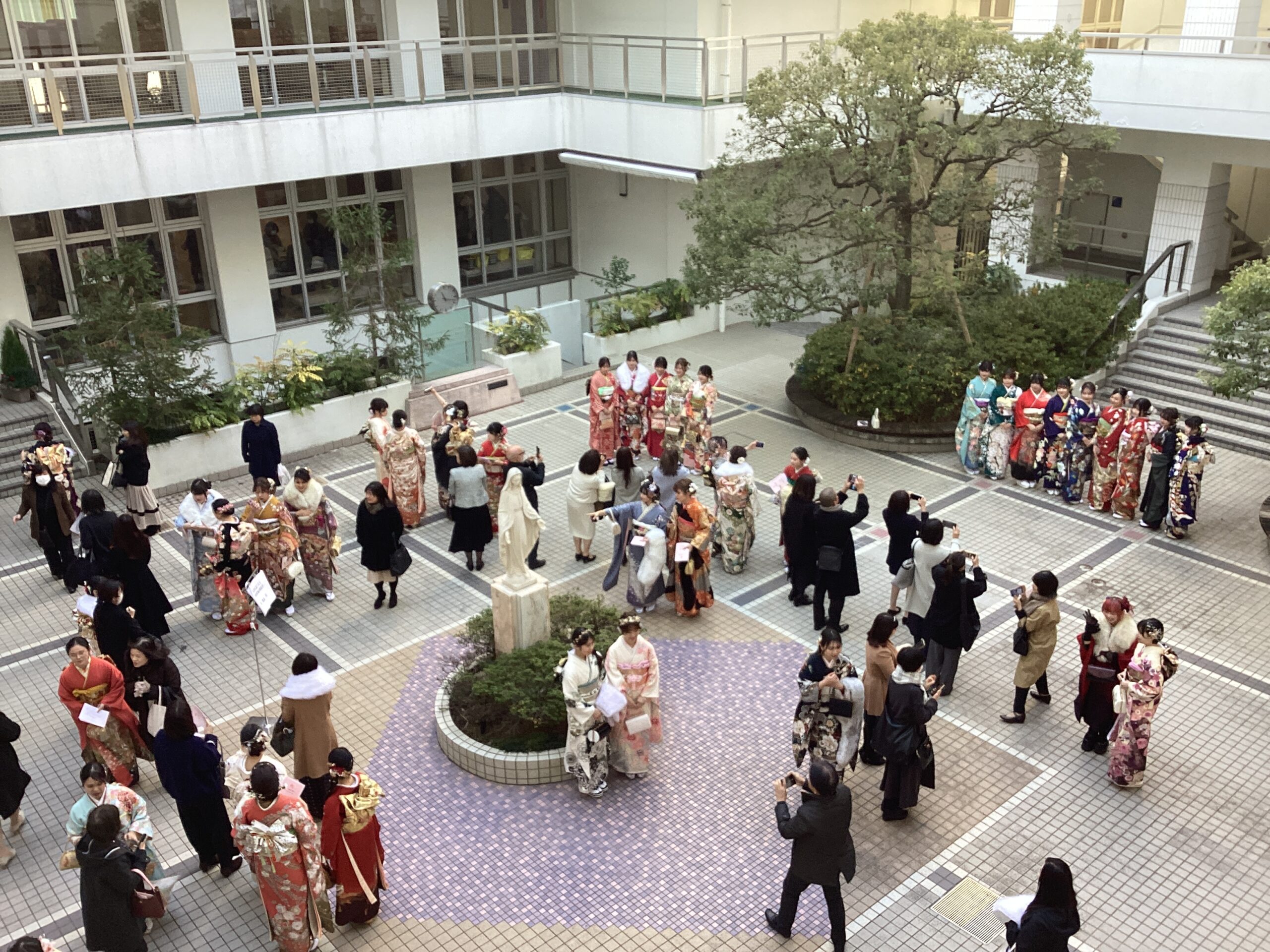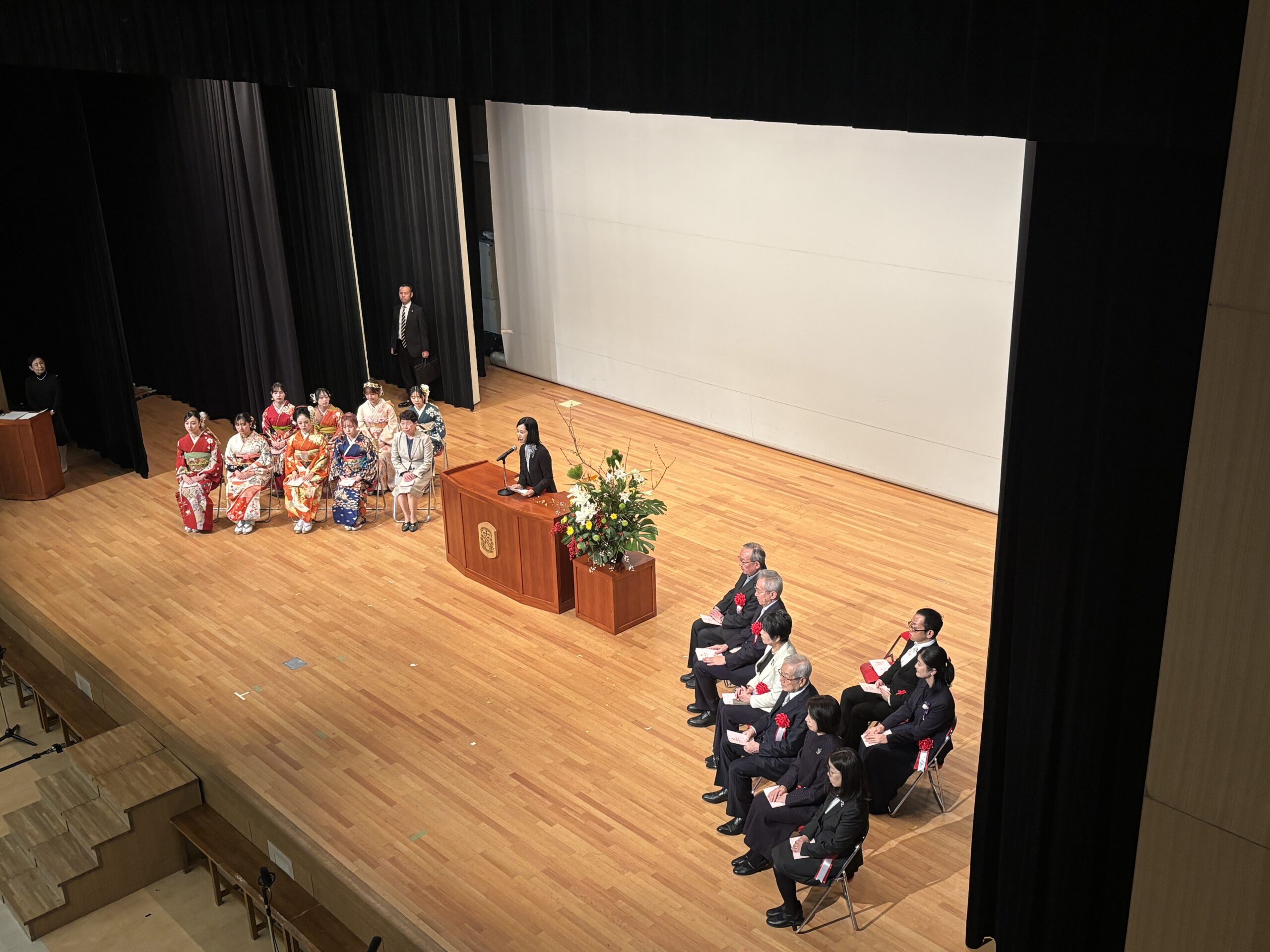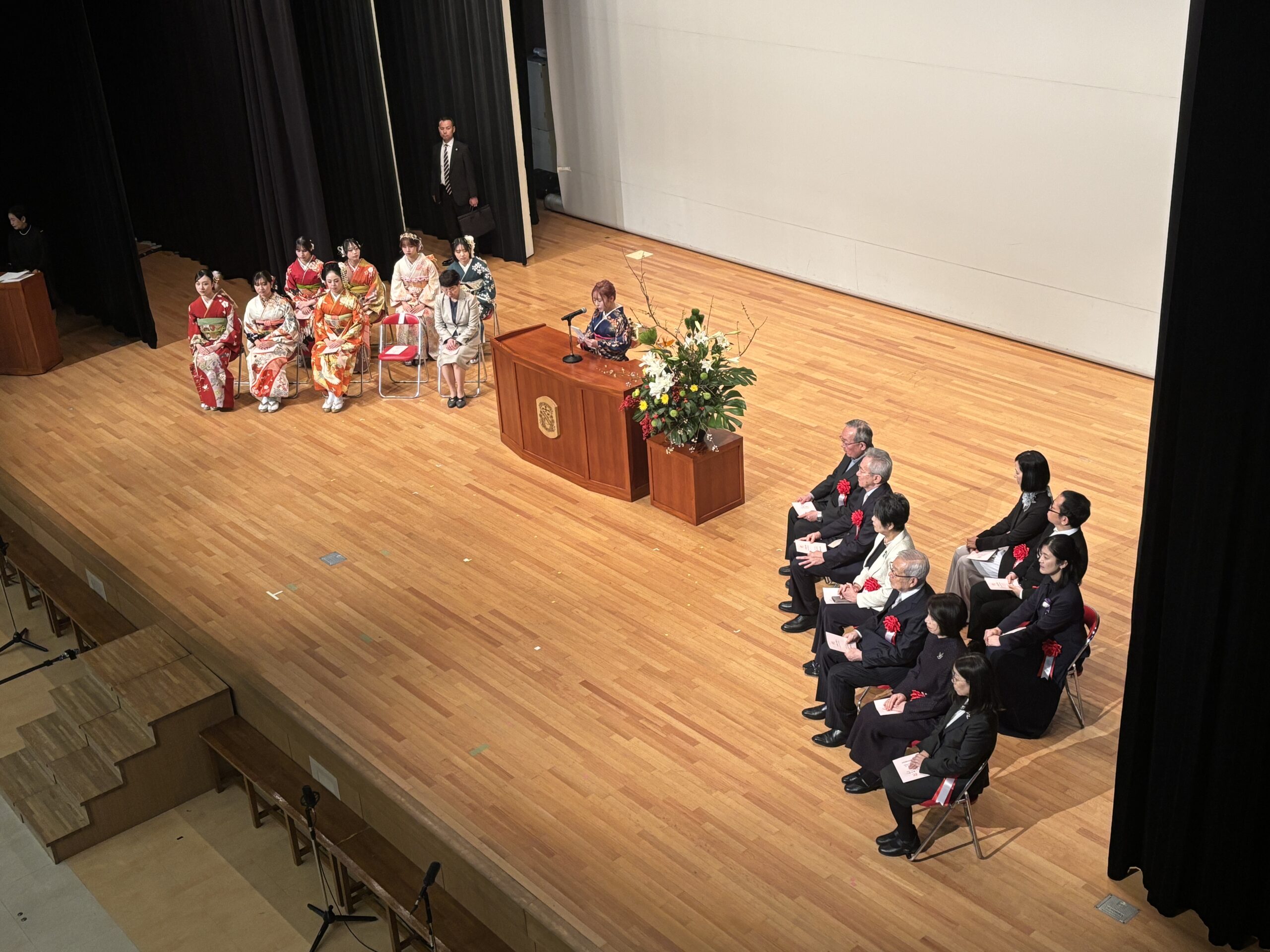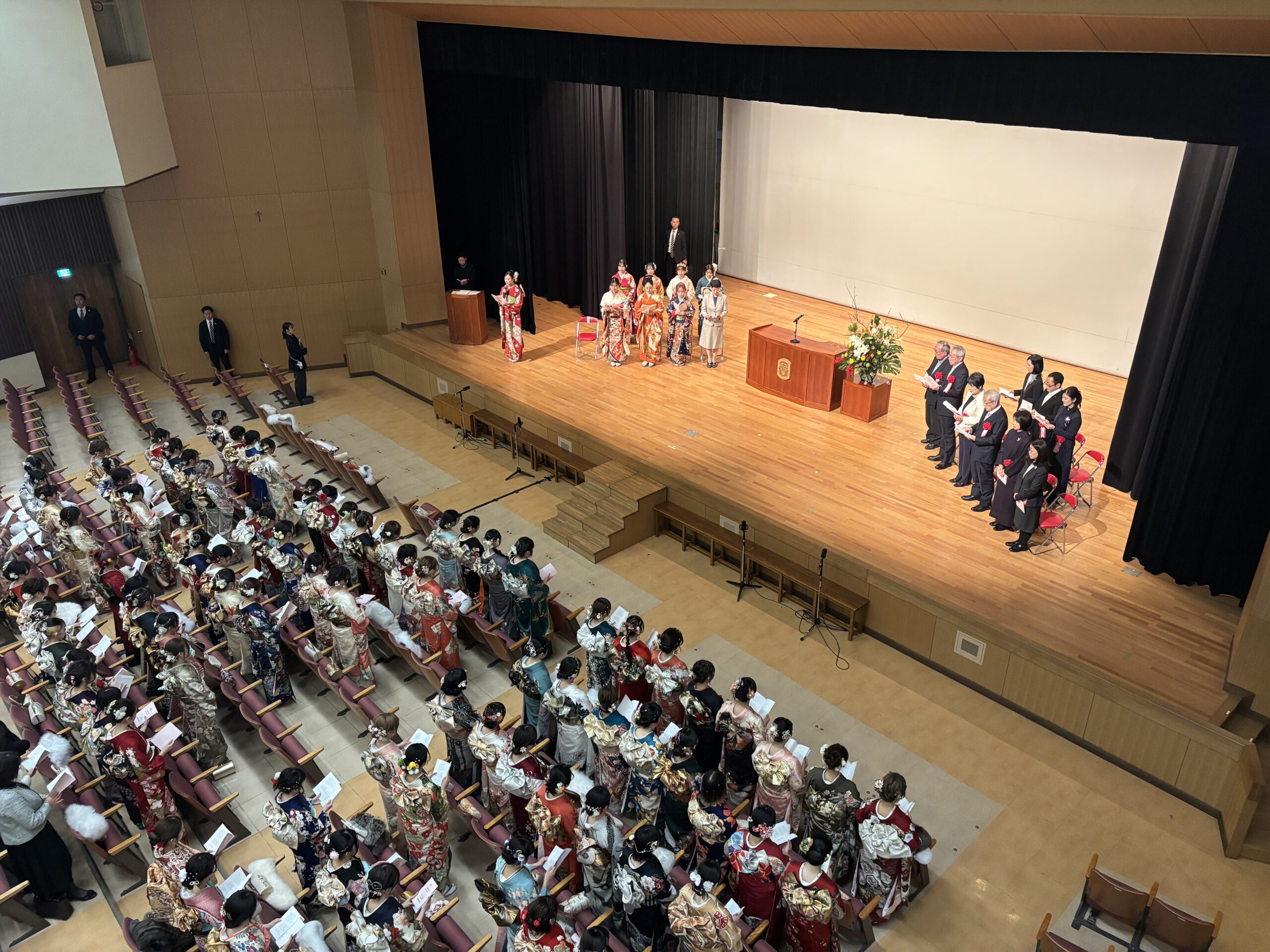 1月5日(月)、講堂にて第76回卒業生(令和6年3月卒)の「二十歳の集い」が行われました。卒業生たちは華やかな晴れ着姿で集まり、旧友や恩師との再会を喜び合いました。
