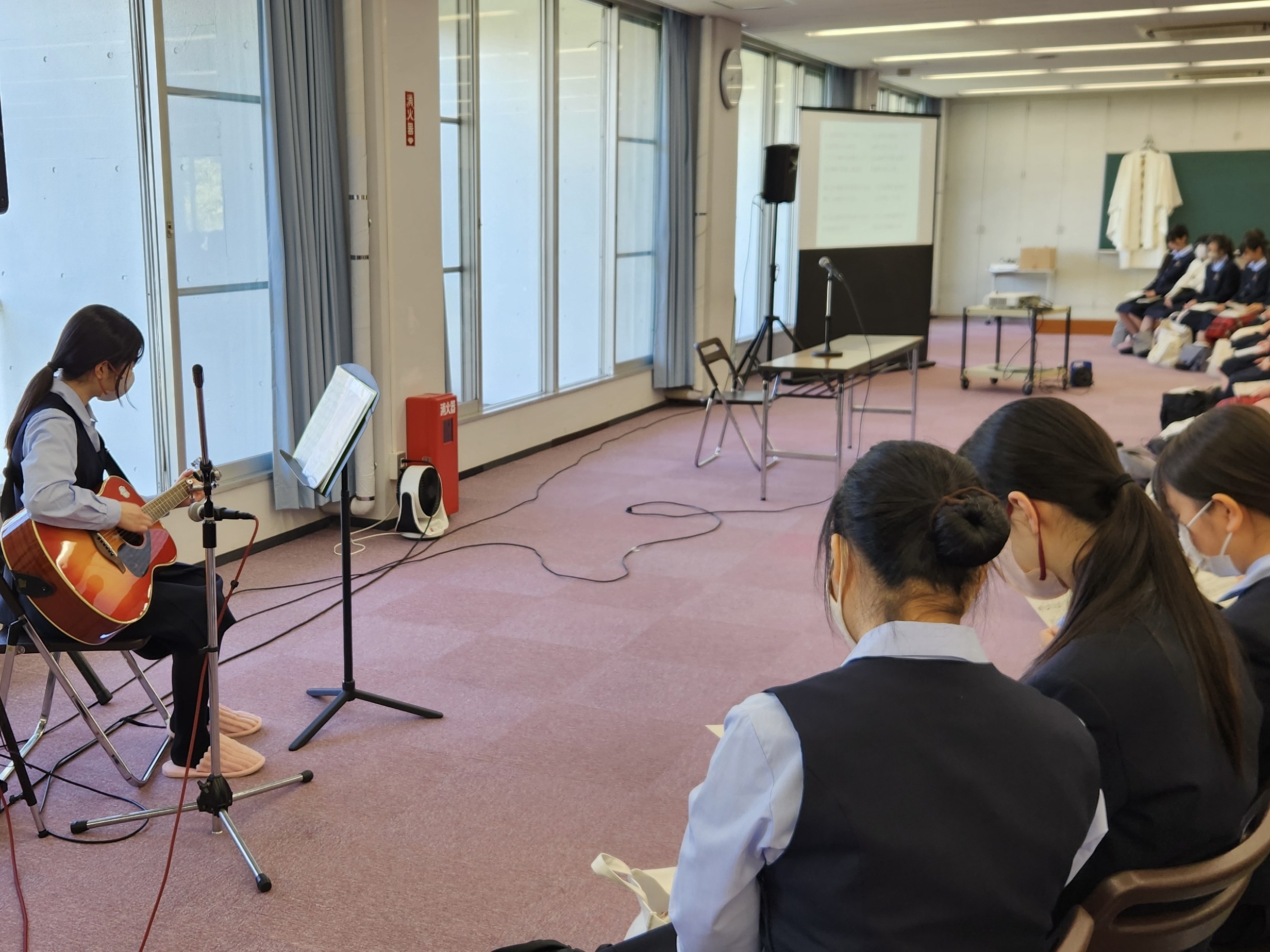 研修会当日では、神父様の講話や班別エクササイズを通して、一人ひとりが主体的に考え、仲間をリスペクトしつつ、活発な議論を行い、研修会のテーマである「生きる」について互いに考えを深め合うことができました。2日目の班別研修発表会で、班の工夫が凝らされた色とりどりの模造紙や、朗読される個性豊かなエッセイ、より深く理解しようと交わされる質疑応答から、一人ひとりの中に“Core”が形作られているのを感じました。この学年のみんなが大きく成長し、スローガンと3つの軸を体現した姿にとても誇らしい気持ちになりました。また、実行委員として一生懸命伝えようとした思いが届き、みんながそれに応えてくれたことで胸がいっぱいでした。一緒に活動してくれた実行委員の仲間、全力で頑張る私を支えて下さった先生方、“Core”と3つの軸のもと素晴らしい研修会を作り上げてくれた学年のみんなに、心から感謝しています。この研修会で学んだこと、得たこと、経験したことはすべて私の宝物です。私はこれからも“Core”を大切にして生きていきたいと思います。そして、学年のみんなも“Core”をずっと大切にし続けてくれると信じています。