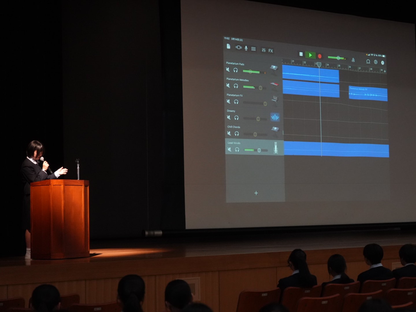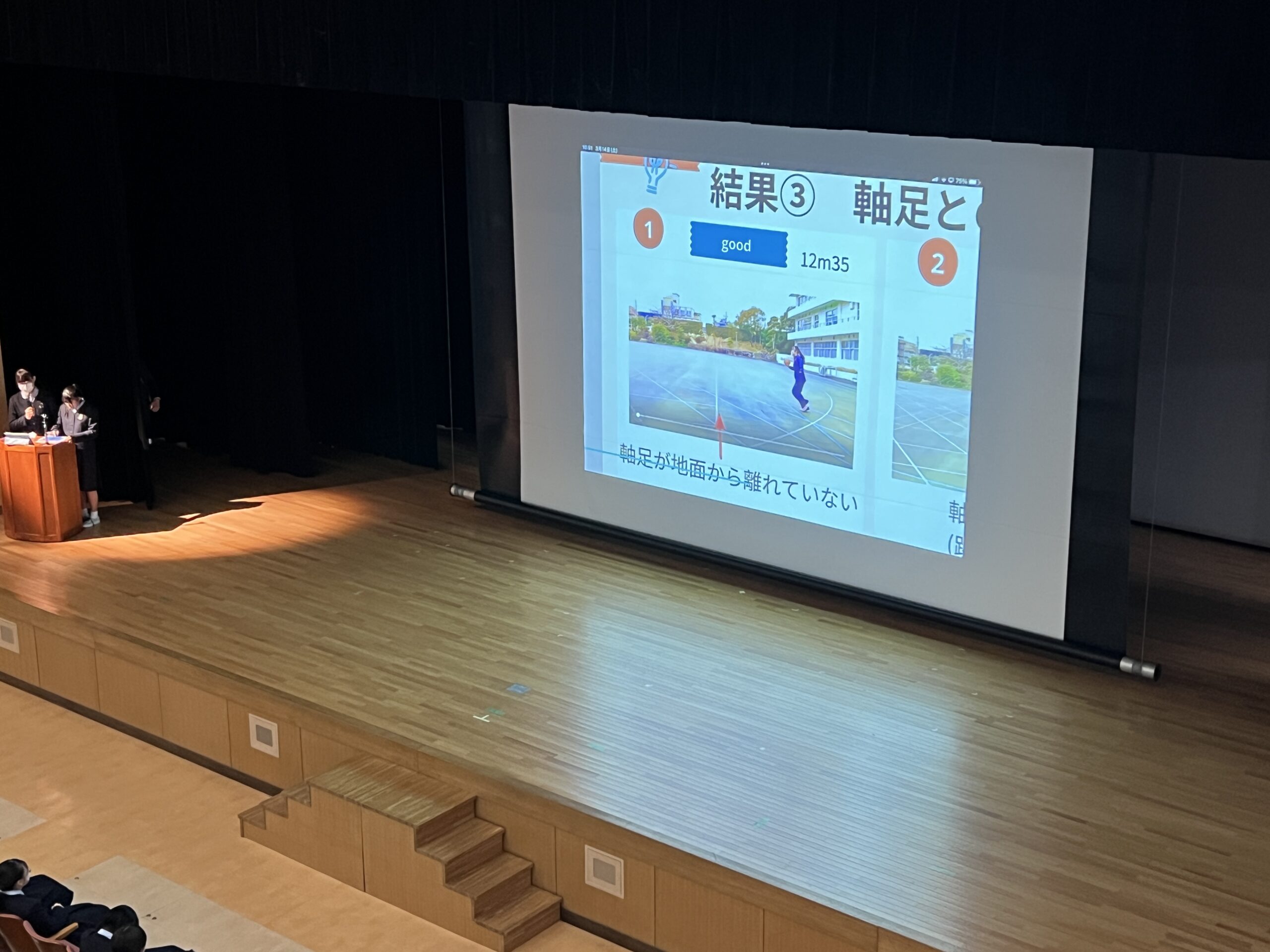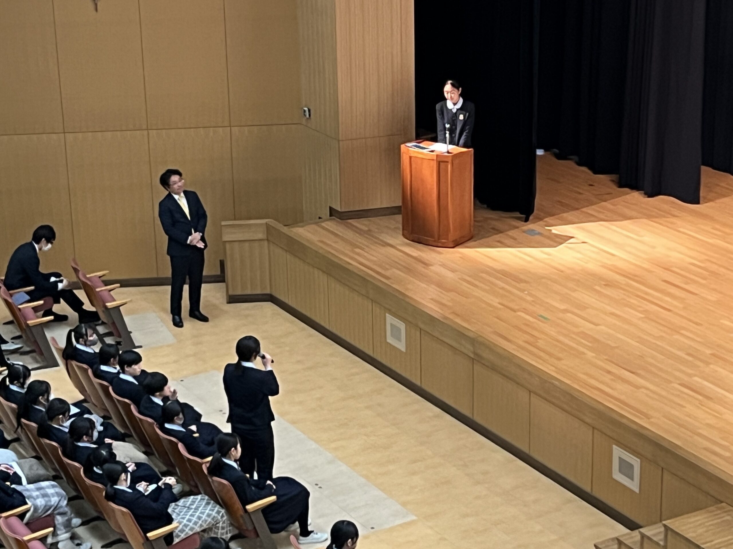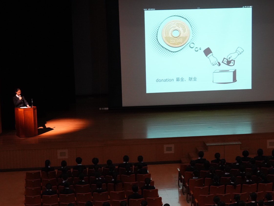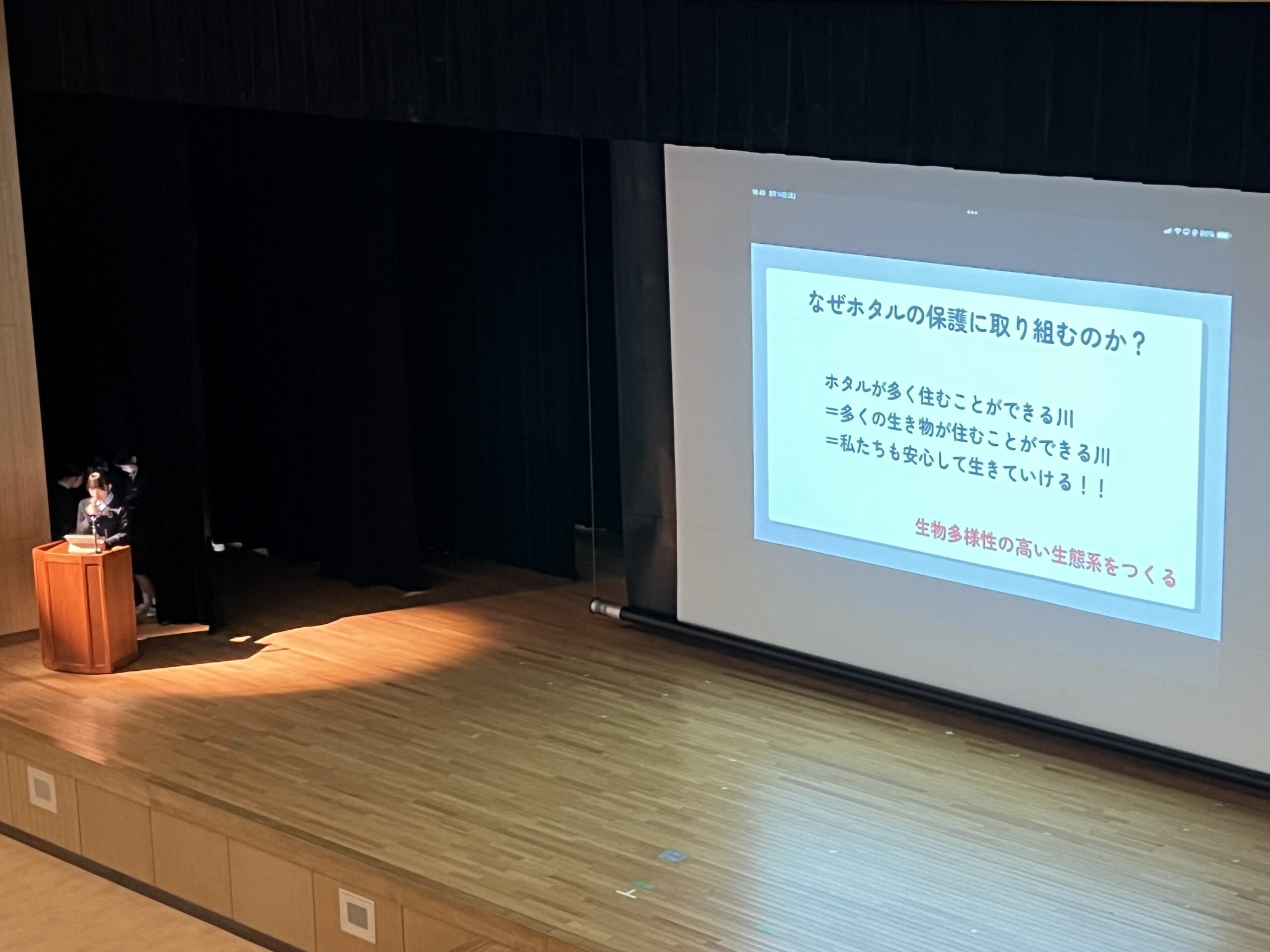 生命科学コース「静岡産ホタルの駿府城公園周辺での定着を目指して」の発表。ホタルの保護を目指して、実際に幼虫やその餌となるカワニナを飼育したり、さまざまな勉強会に参加したりしました。生命科学コース「ボール投げの記録を伸ばそう」の発表。実際に運動部員にボール投げをしてもらった動画。飛んだ場合と飛ばない場合のフォームを分析し、映像やグラフを用いて説明しました。科学技術コース「入眠用BGM作成」の発表。Garagebandというアプリを用い、音響設計理論に基づいて、脳を休息状態にするBGMを作ったそうです。「1/fゆらぎ」(規則性と不規則性を取り混ぜた音の流れ)や、自然音(波の音)を取り入れました。科学技術コース「フェルト人形を使ったコマ撮りアニメーション」の発表。幼いころからテレビのコマ撮りアニメに親しんできた経験から、自作を考えたとのこと。手作りのフェルト人形のキャラクターが3体登場し、それぞれ名前と性格があるそうです。科学技術コース「VICTORIA 電気自動車の設計と製作」の発表。実際に製作した車体(写真中央)に乗って登場し、製作過程での工夫や苦労、大会出場の様子も説明しました。社会科学コース「潜在的な差別・偏見の原因とは」の発表。「潜在的なステレオタイプの形成」に関する調査では、「サッカー」「ピンク」などの単語から想起される性別について、調査対象の女子校・男子校の別、さらに学年別に結果を分析しました。社会科学コース「学校へのぬいぐるみの導入による居心地の良さの向上」の発表。全国でぬいぐるみを導入した学校への取材の様子や、自分の所属するクラスでの導入実験の結果などを説明しました。国際教養コース「Peace. Let’s Make It Happen!」の発表。世界の紛争や災害に苦しむ子どもたちを救うために、私たち学生には何ができるかをプレゼンテーションしました。本校の活動例としては月例献金や、フォスターフレンドの活動を挙げました。国際教養コース「How Can We Supply Safe Water to People around the World?」の発表。世界の水問題について取り上げ、限りある資源である水を効果的に使える水栓の紹介や、私たち学生にできることを説明しました。質疑応答の様子。写真は、国際教養コースの発表の時のものです。英語で質問し、英語で答えるやりとりもありました。