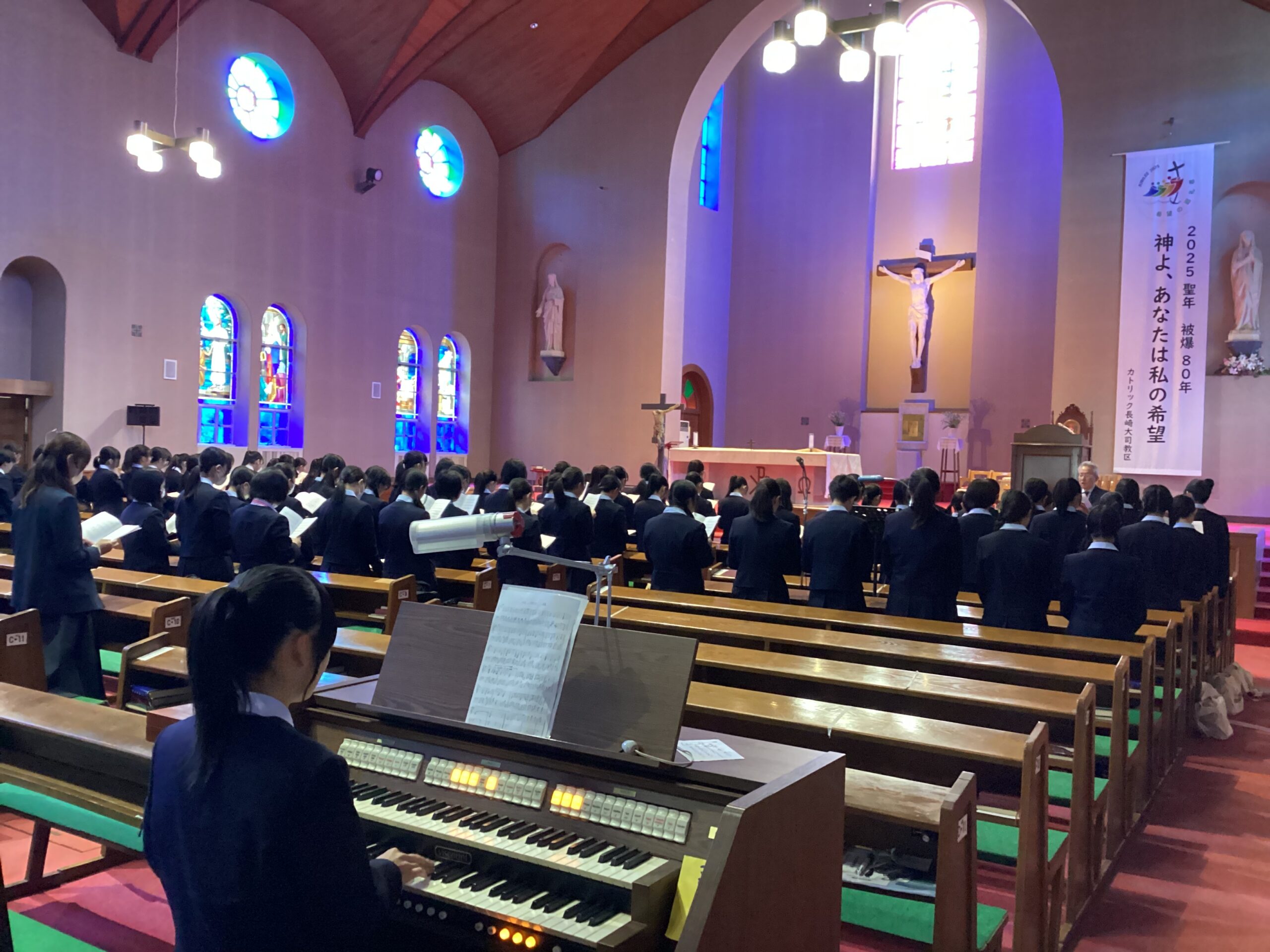 私たち高校2年生は「継承」「発展」という意味をこめた「Olive」をスローガンに掲げ研修旅行に行ってきました。終戦から80年が経った今、戦争を経験された方からのお話や、原爆にまつわる場所に訪れることはとても貴重な機会となっています。実際に、この旅を通して授業や教科書だけでは感じきれなかった「平和の大切さ」を身をもって感じることができました。実行委員長として、この旅が私たち高校2年生にとって平和、信仰、祈りを通してもう一度自分自身を見つめ直す有意義な旅となっていたら良いなと思います。