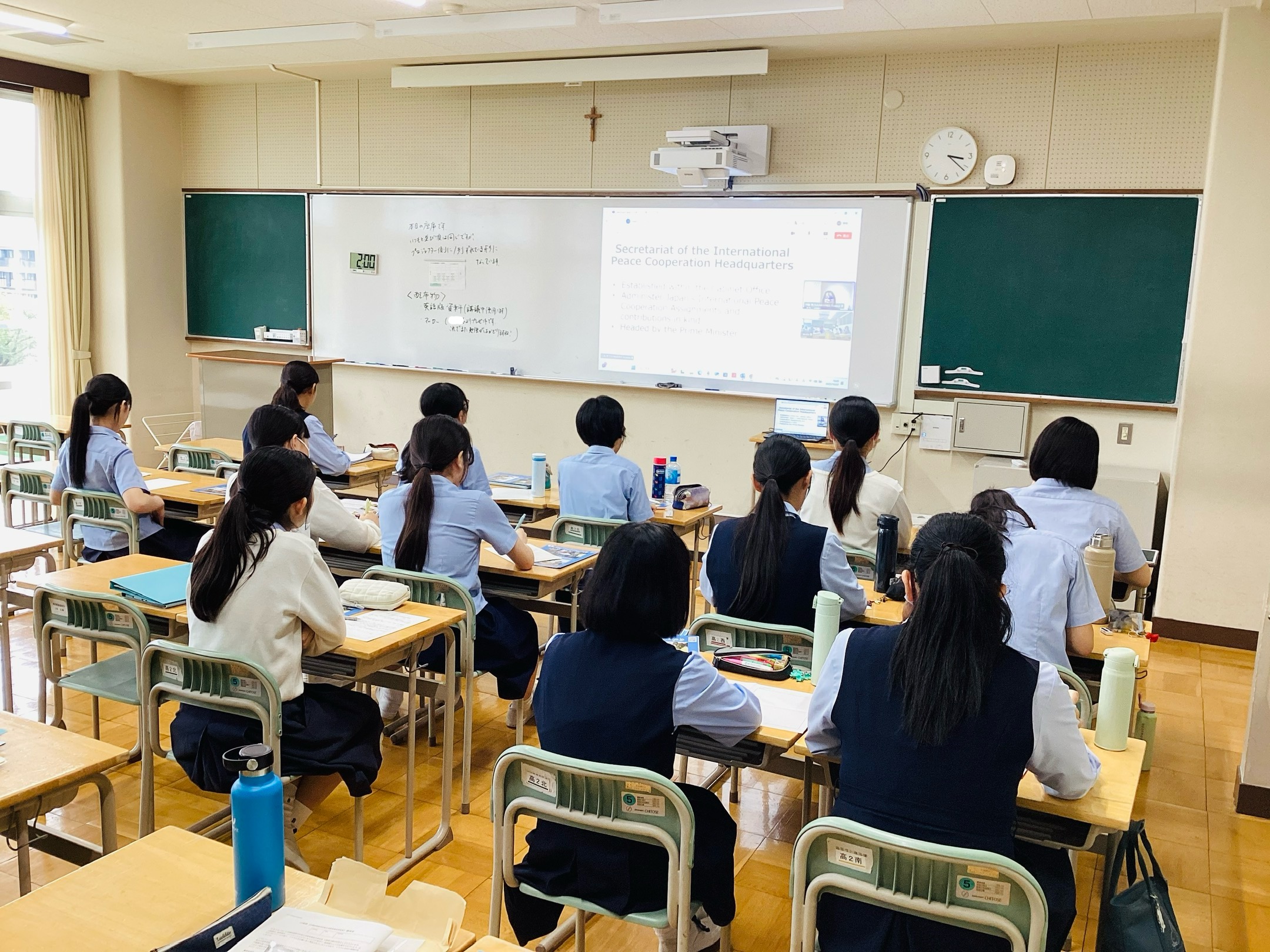 10月7日(火) の高2国際教養コースの時間に、内閣府国際平和協力本部事務局の研究員の方による、オンラインによる講演会を実施しました。テーマは「平和維持活動と日本が行っている紛争後の支援及び国際的なキャリアについて」です。